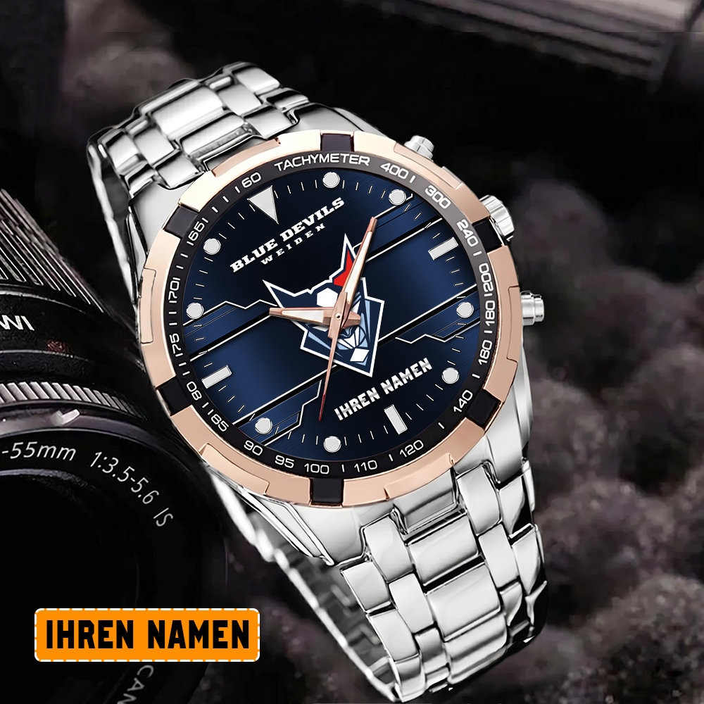 Die Blue Devils Weiden Edelstahl-Uhr vereint mühelos sportliche Eleganz mit Teamstolz. Mit ihrem robusten Edelstahl-Design und dem ikonischen Logo ist sie ein stilvolles und leidenschaftliches Accessoire für jeden Fan.
