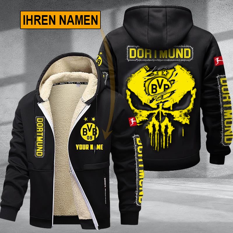 Das ikonische Borussia Dortmund-Logo prangt stolz auf der Brust und zeigt allen, wo Ihre Loyalität liegt. Mit modernem Schnitt und robustem Reißverschluss ist diese Jacke perfekt für jeden Borussia Dortmund-Fan, der sein Team mit Stolz und Stil repräsentieren möchte!