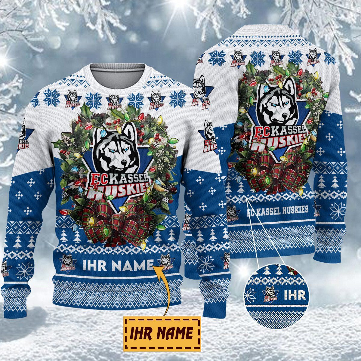 Bitte überprüfen Sie die Größentabelle unten für Ihren EC Kassel Huskies Pullover.