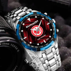 Die Eintracht Frankfurt Edelstahl-Uhr vereint mühelos sportliche Eleganz mit Teamstolz. Mit ihrem robusten Edelstahl-Design und dem ikonischen Logo ist sie ein stilvolles und leidenschaftliches Accessoire für jeden Fan.
