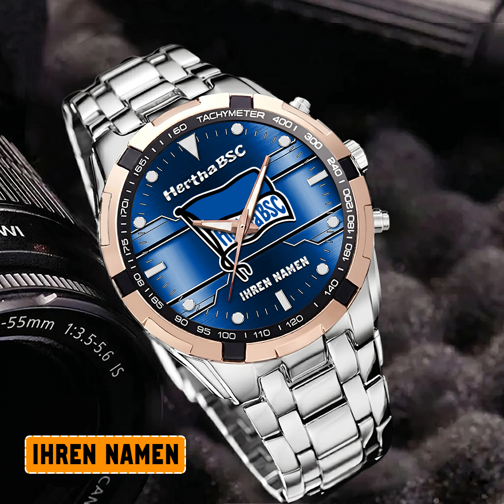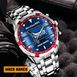 Die Hertha BSC Edelstahl-Uhr vereint mühelos sportliche Eleganz mit Teamstolz. Mit ihrem robusten Edelstahl-Design und dem ikonischen Logo ist sie ein stilvolles und leidenschaftliches Accessoire für jeden Fan.