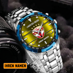 Die Lausitzer Füchse Edelstahl-Uhr vereint mühelos sportliche Eleganz mit Teamstolz. Mit ihrem robusten Edelstahl-Design und dem ikonischen Logo ist sie ein stilvolles und leidenschaftliches Accessoire für jeden Fan.